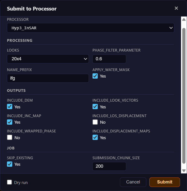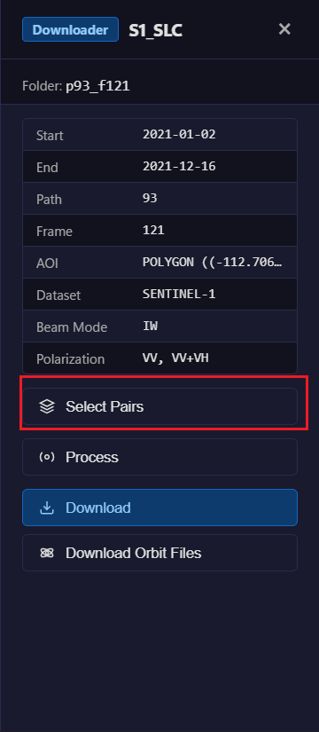 [Dry run] Would submit 65 pairs via Hyp3_InSAR from p93_f121