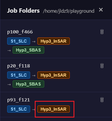 Once jobs are successfully submitted, a Processor tag with your processor name will appear in the job folder panel, indicating that HyP3 processing is active for this stack.