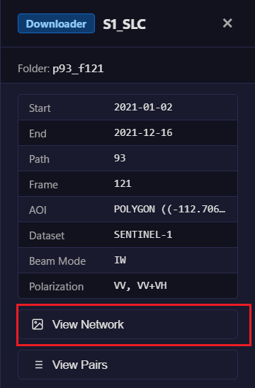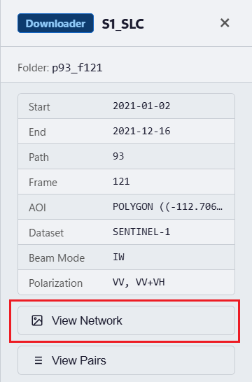 Then click the downloader tag (e.g. S1_SLC) on the job folder to open its detail panel.