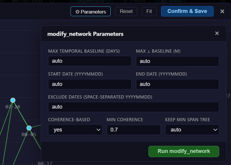 | Max temporal baseline | Remove pairs exceeding this temporal separation (days) |